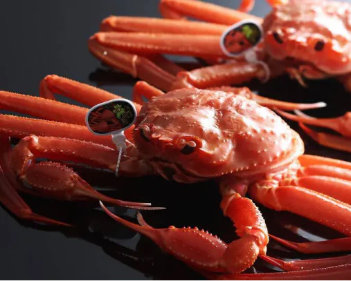 従来、水揚げされたかにの区別は、その漁港独自のタグにあります。 品質管理の厳しい柴山漁港では水揚げされたかにに他漁港では類を見ない細かなランク付けが行われます。