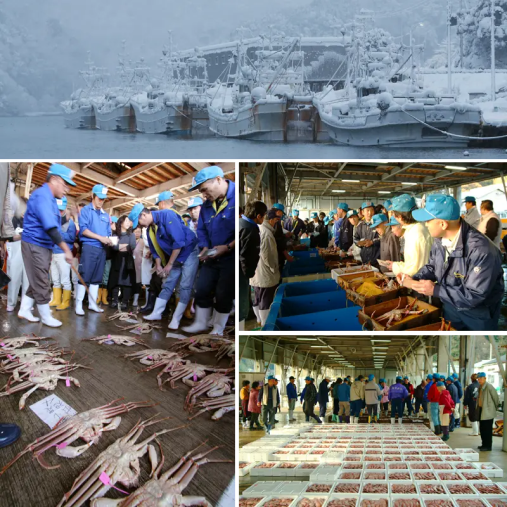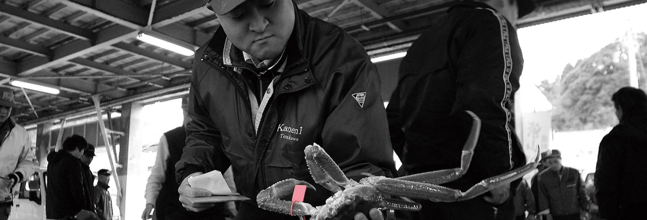 仕入れ先は歴史ある日本海の2大漁港。柴山がに(松葉がに)の「柴山漁港」。香住ガニ(紅ずわいがに)の香住漁港。長年生活を共にした両漁港は「カネニ」の庭のようなもの。いい所も悪い所も知り尽くしています。昔から山陰の台所として新鮮な魚介類が毎日水揚げされ町を支えている有名漁港です。