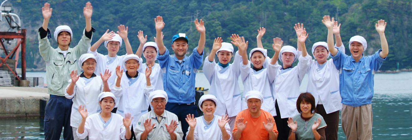 1分の時間差も許されない、かにの釜茹で、揺るぎない信頼を得ている手作業のかにの身抜き、天然の潮風で天日干しされる干物、あえて時間と手間暇のかかる手作業で、ひとつひとつ丁寧な商品づくりを心がけます。社員ひとりひとりが職人としての誇りを持って日々商品づくりを行っています。
